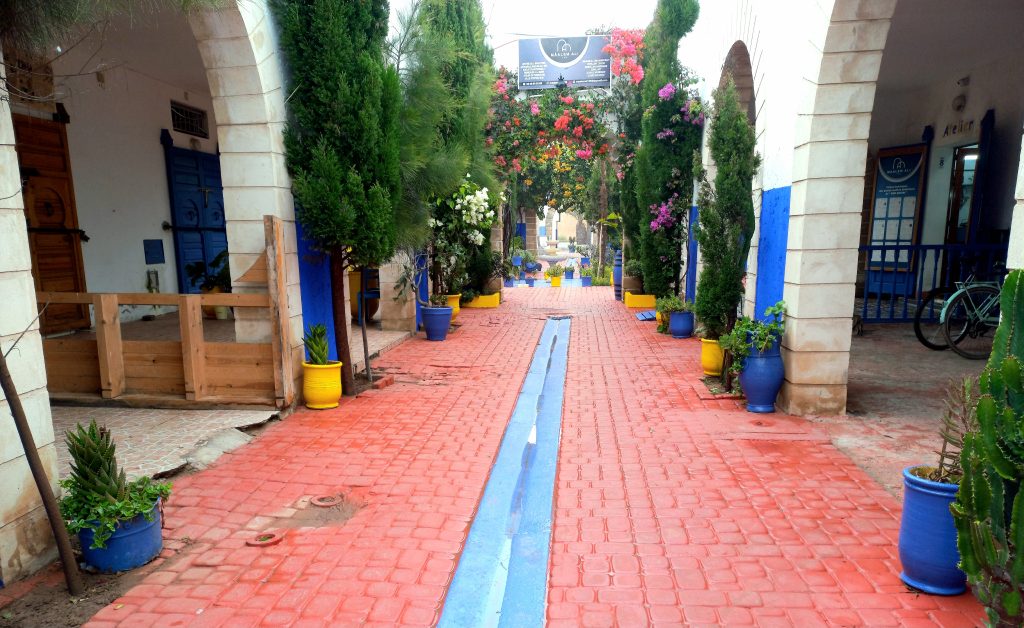 Essaouira-Mogador, une petite ville touristique sur la côte atlantique à moins de trois heures de route de Marrakech. La medina est construite au 18ème siècle, sous forme d’une grande agglomération fortifiée avec des ruelles parallèles et entourée de remparts. Elle est lieu de plusieurs cooperatives de tapis berberes, de bois de thuya et de bijoux d’argent.